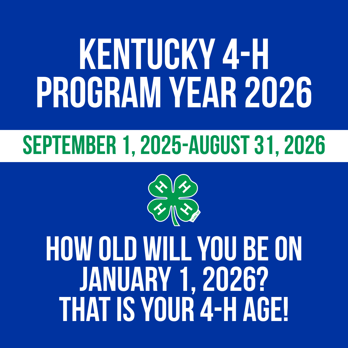 Any young person ages 9 through 18 may be involved in Kentucky 4-H. What is your 4-H age?